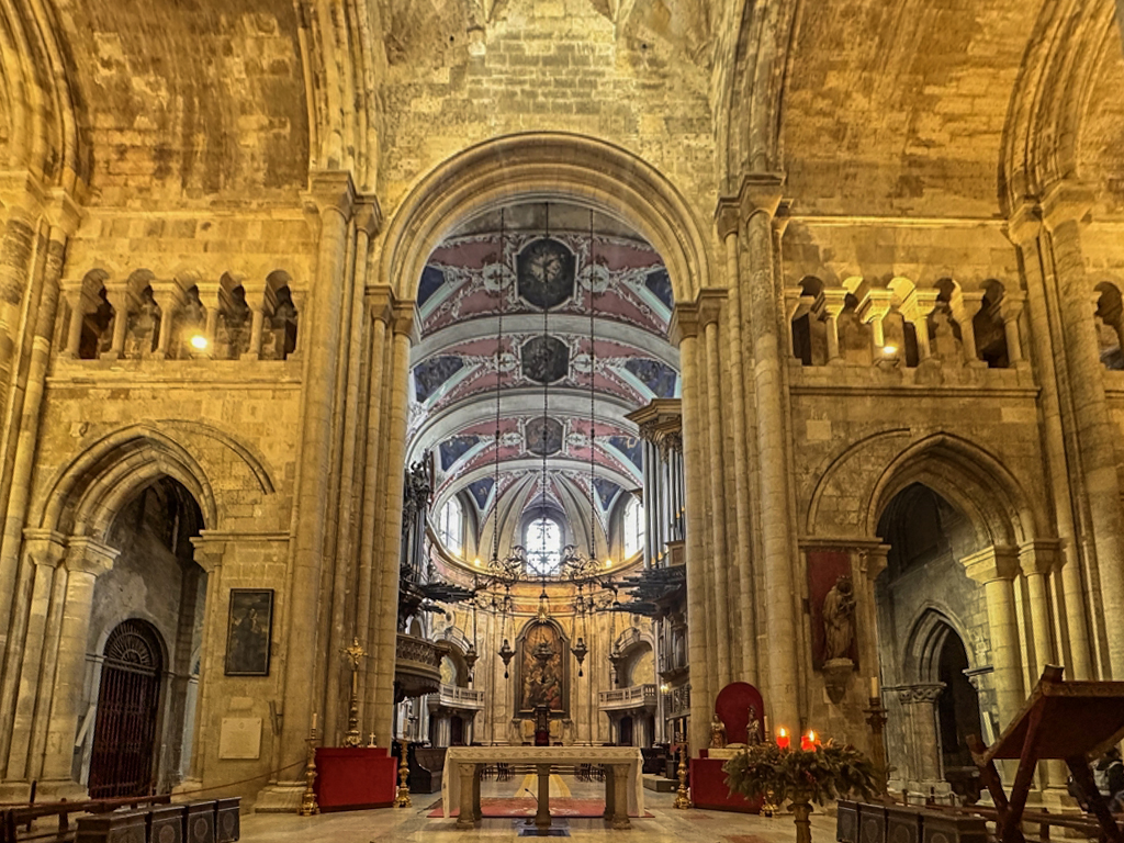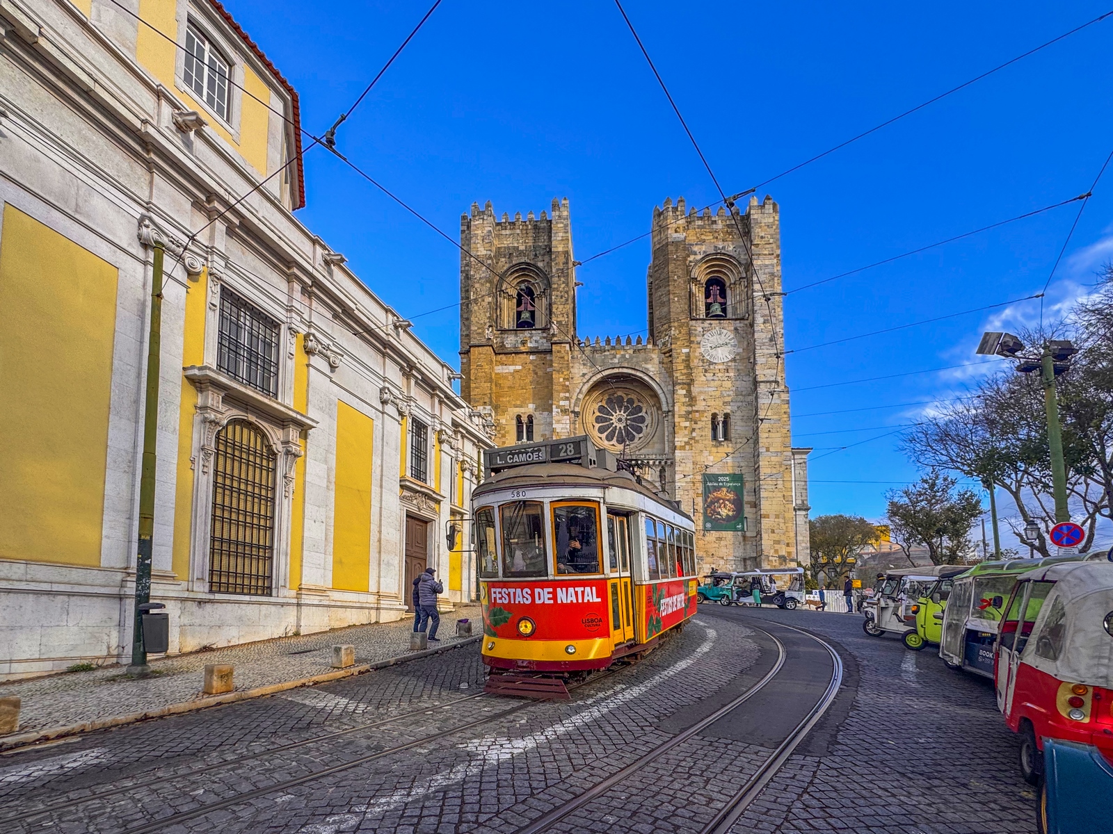 La Catedral: Basílica de Santa María la Mayor de Lisboa o Sé de Lisboa (en portugués Catedral de Santa Maria Maior) es la catedral metropolitana y sede patriarcal de la ciudad de Lisboa en Portugal. Su construcción se inició en 1148, un año después de que Alfonso Enriques conquistara la ciudad. Está considerada como la iglesia más antigua de Lisboa. Está clasificada como Monumento Nacional desde 1910. De estilo románico, fue construida bajo la dirección de Roberto de Lisboa y se ubicó en el área que ocupaba la mezquita y en la que anteriormente había ocupado un templo romano. Los trabajos de construcción se realizaron con relativa rapidez lo que permitió que en 1150, estando completada la capilla mayor, se pudiera consagrar. El edificio ha sido modificado en varias ocasiones y ha sobrevivido a varios terremotos. Actualmente es el resultado de una mezcla de distintos estilos arquitectónicos. El claustro, de estilo gótico, lo mandó construir el rey Denis I y el deambulatorio Alfonso IV para recibir a los peregrinos que acudían al templo a venerar las reliquias de San Vicente. La sacristía renacentista fue construida en 1649 la capilla mayor fue remodelada tras el terremoto de Lisboa de 1755.