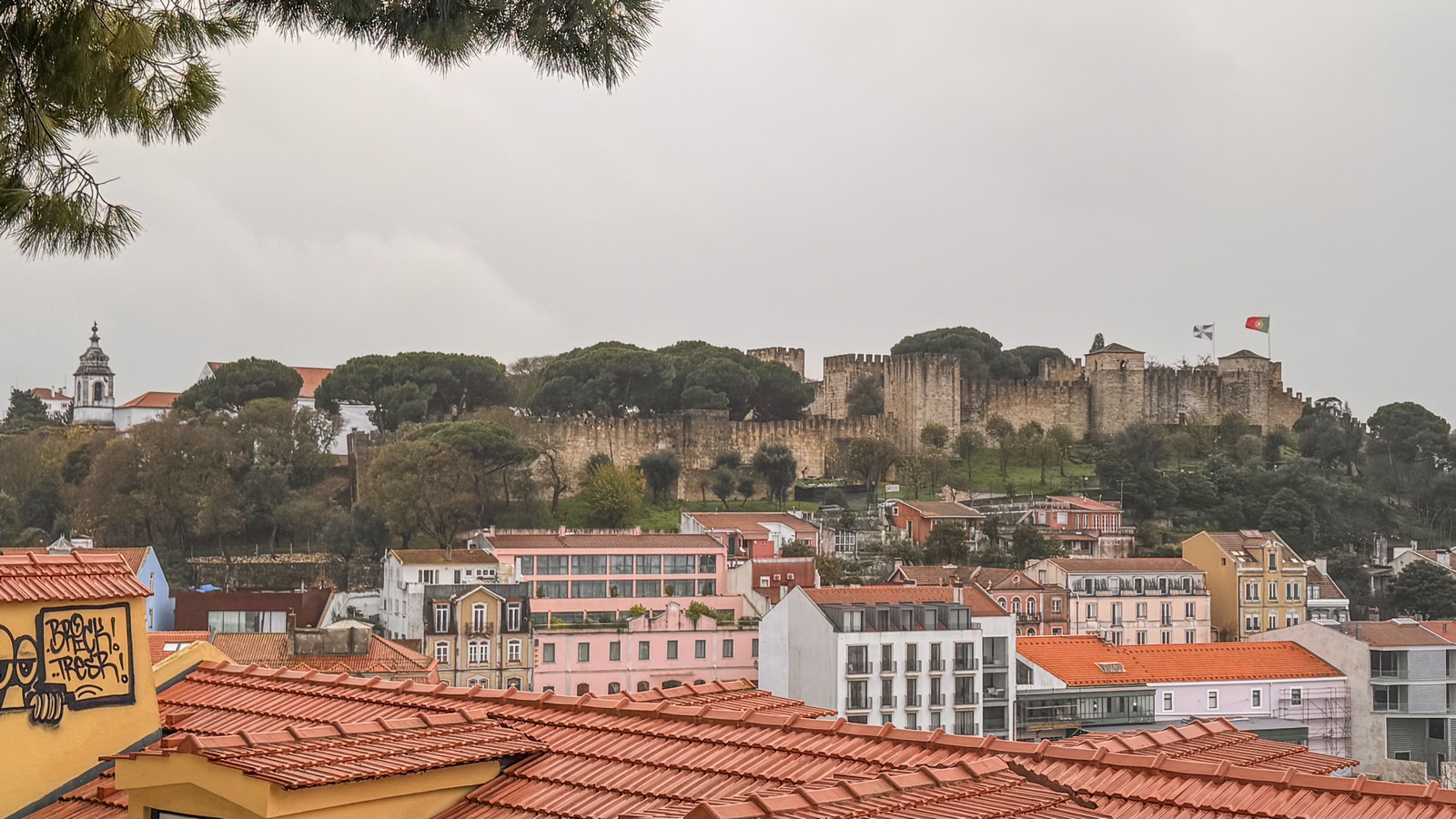 obtiene una perspectiva del castillo, de la iglesia de Graça, del