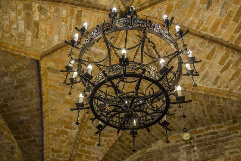 El palacio u hogar de los duques está dispuesto alrededor de un patio rectangular pequeño. Galerías de madera circundan los límites del patio y permiten ir entrando a las salas del palacio.