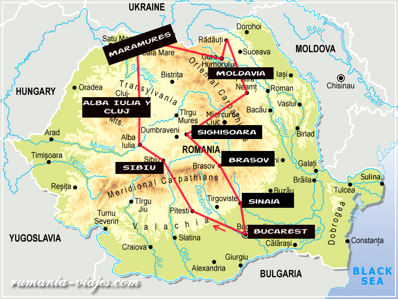 Este recorrido lo realizamos con el guía Cristi Tudoran. Magnífico guía y gran porfesional. Si os interesa un viaje organizado por Rumania, no dudéis en contactar con este magnífico profesional. Su página web esta aquí y su email : tudoran_cristi@yahoo.com Rumanía es un país situado en la región sudeste de Europa y que limita con Hungría y Serbia la oeste, Bulgaria al sur, Ucrania al norte y Moldavia y una pequeña porción del mar Negro al este. Su superficie es casi la mitad de la de España. Desde el 1 de enero de 2007 el país pertenece a la Unión Europea. La cordillera de los Cárpatos recorre el país de norte a sudeste, y en su interior se encuentra la meseta de Transilvania, una de las zonas más conocidas del país, con anchos valles y extensas laderas para el cultivo, aunque las llanuras más extensas se encuentran en la zona de Valaquia. Por otra parte el río Danubio es el más importante de Rumanía y forma la mayor parte de su frontera con Bulgaria. A lo largo de su historia, Rumanía ha sido invadida por varios pueblos que han dejado su impronta cultural. Uno de los que más influencia ha tenido fueron los romanos. Tanto es así que el rumano es la única lengua latina de Europa del Este. También han dejado su impronta eslavos, húngaros, griegos, turcos o gitanos, y su influencia ha quedado plasmada en la cultura popular. La verdad es que Rumanía nos sorprendió muy agradablemente y disfrutamos mucho de este corto pero intenso viaje. Los monasterios e iglesias pintadas de Bucovina, las iglesias de madera de Maramures o las ciudades fortificadas de Transilvania, entre otros muchos alicientes, justifican sobradamente el viaje. DineroLa moneda oficial de Rumanía es el Leu (Lei en plural, cuyo símbolo es RON). El leu a su vez se subdivide en 100 bani. Las tarjetas de crédito más extendidas suelen ser aceptadas para el pago en bastantes lugares, especialmente en hoteles, restaurantes y tiendas