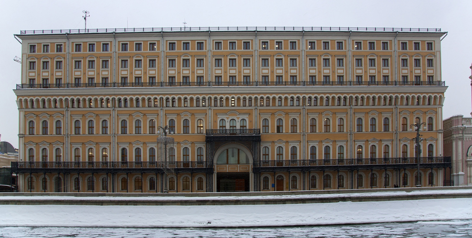 Esta es la fachada trasera del Museo estatal de Historia, situada en la plaza de Menége. En frente el Monumento al mariscal Zhúkov